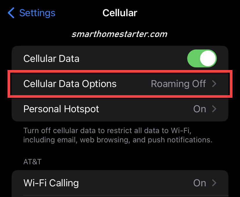 - You will see “Cellular Data Options” near the top, open it.