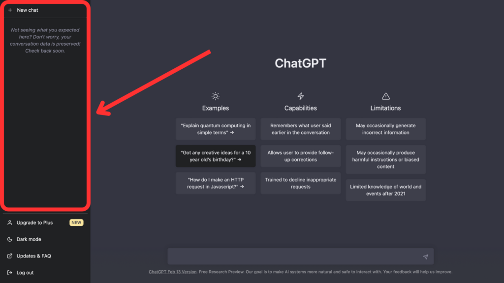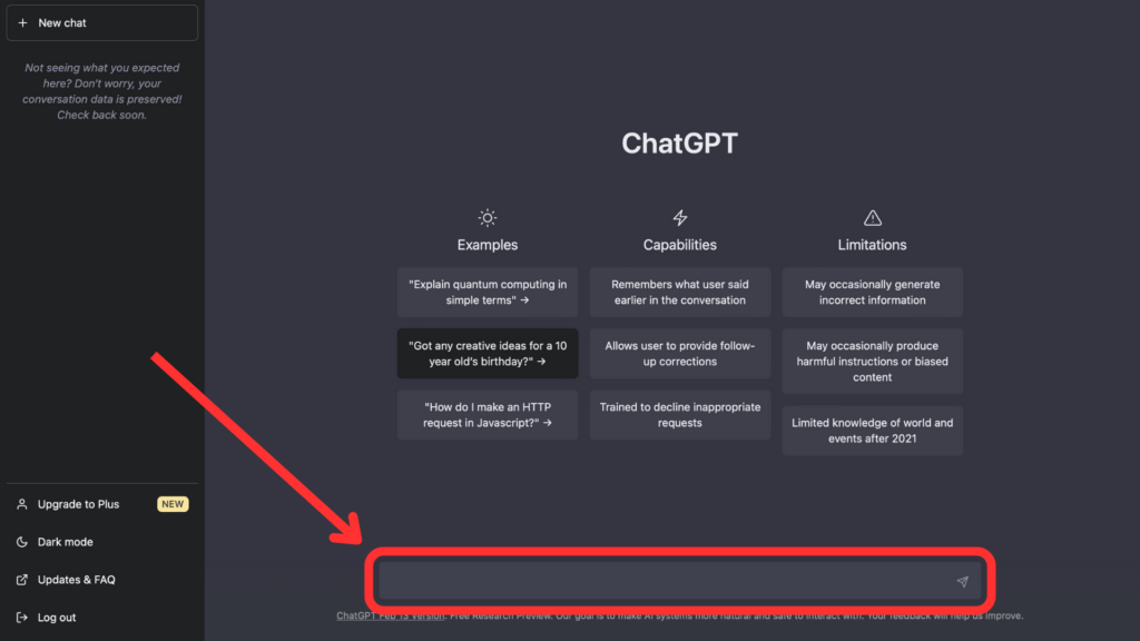 Now that we know how to access ChatGPT, let’s take a look at the user interface and it’s functionality:
