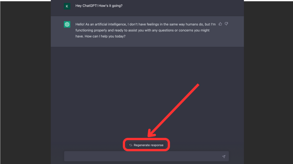 The final important function of the user interface is the “Regenerate Response” button that appears after you have asked ChatGPT a question: