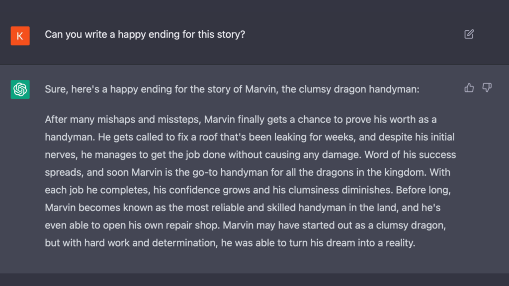 Now, without restating any details, let’s have ChatGPT write a happy ending for our friend Marvin: