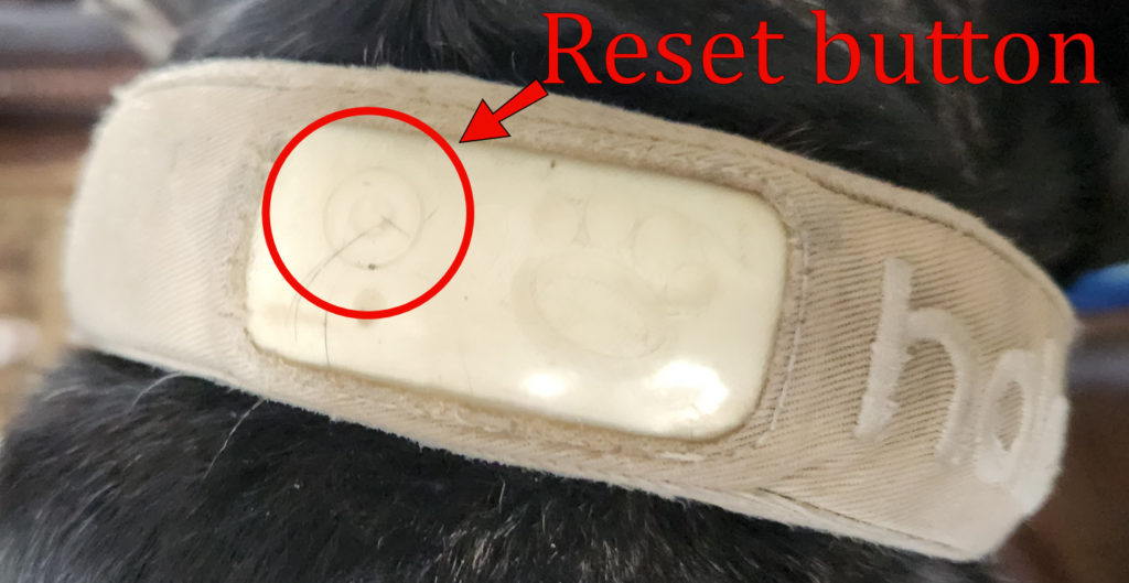 You’ll know that you’ve held the button down long enough when the green light stops flashing and goes out entirely. Then you can release the button. This will trigger the collar to reset itself.