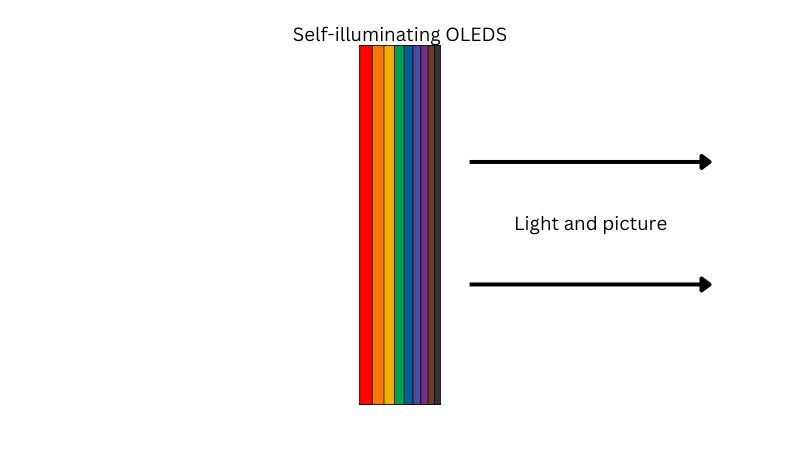OLED screens, however, work on an entirely different principle. Instead of having two layers, they have just one: a grid of tiny multicolored LEDs which emit their own light, providing both illumination and picture all in one package.